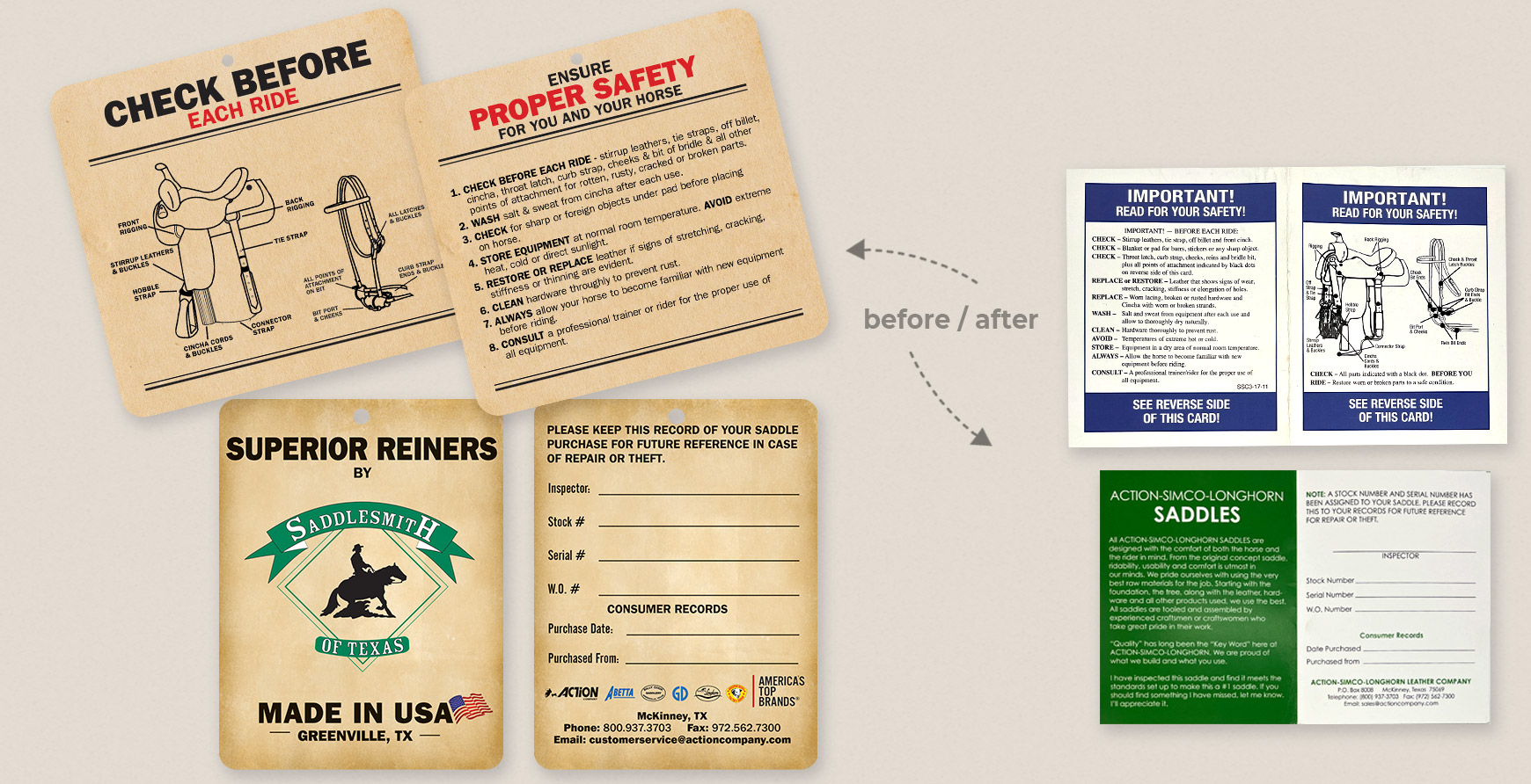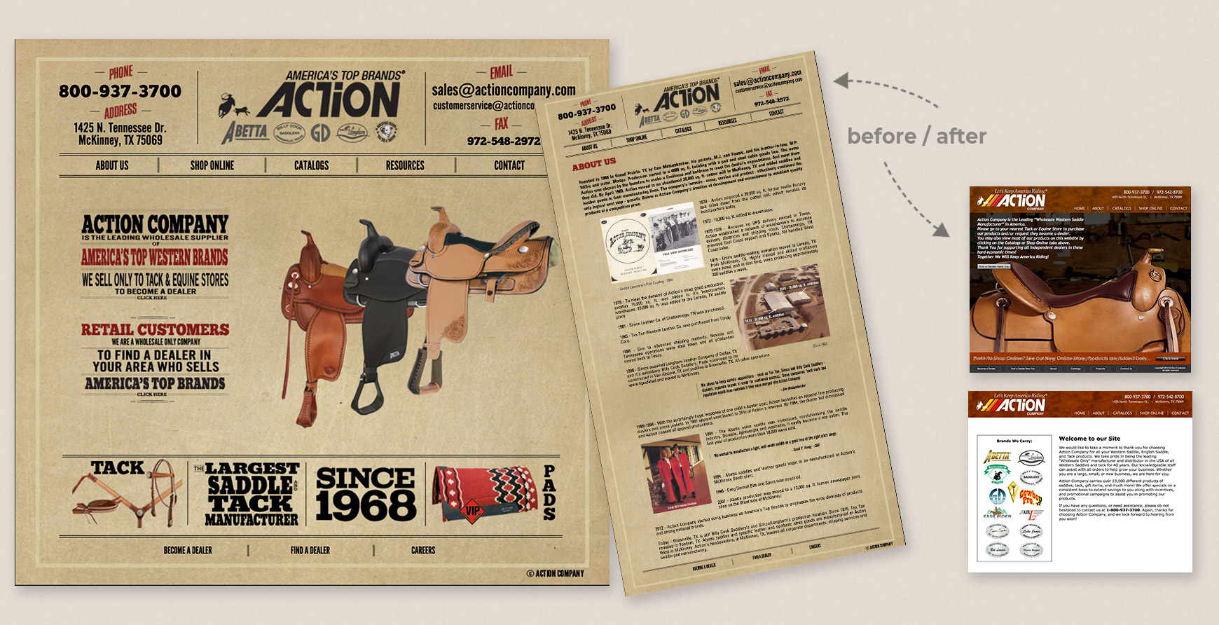 Action Company presented me with the opportunity to completely transform its art department's graphics, branding, and digital presence. They were the leading manufacturer of western saddles and tack, operating in wholesale and retail, with seven brick-and-mortar stores, partner brands, and wholesale and retail websites. My goal was to give their disjointed branding a cohesive look.